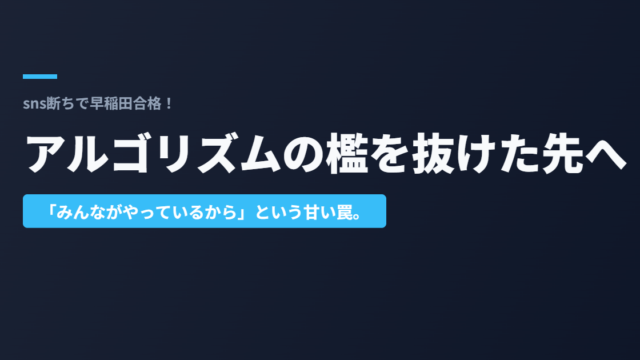 Instagram、Twitter、TikTokを捨て、アルゴリズムの檻から脱出した1年半の記録。私立文系(英国世)で早稲田大学合格という結果を掴んだのは、ドパミンを管理し、脳を「覚醒」させたからだった。SNSを絶った者にしか見えない、真の自由と成功の法則。