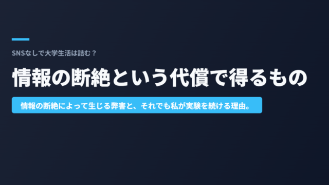 大学入学を控えた高3の春休み。SNSがないことで生じる「情報の断絶」を徹底検証。#春から○○大学に参加できない疎外感やサークル情報不足といった弊害を挙げつつ、それでもなおSNSを拒絶し「自分自身の人生」で実験を続ける理由を解説。